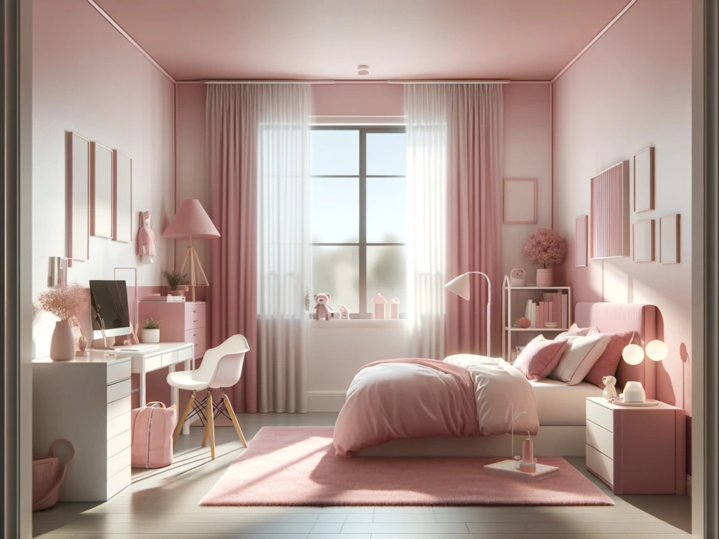 - رنگ اصلی: صورتی به عنوان رنگ پایه میتواند انتخاب خوبی باشد. میتوانید از طیفهای مختلف صورتی استفاده کنید تا عمق و تنوع به فضا ببخشید.