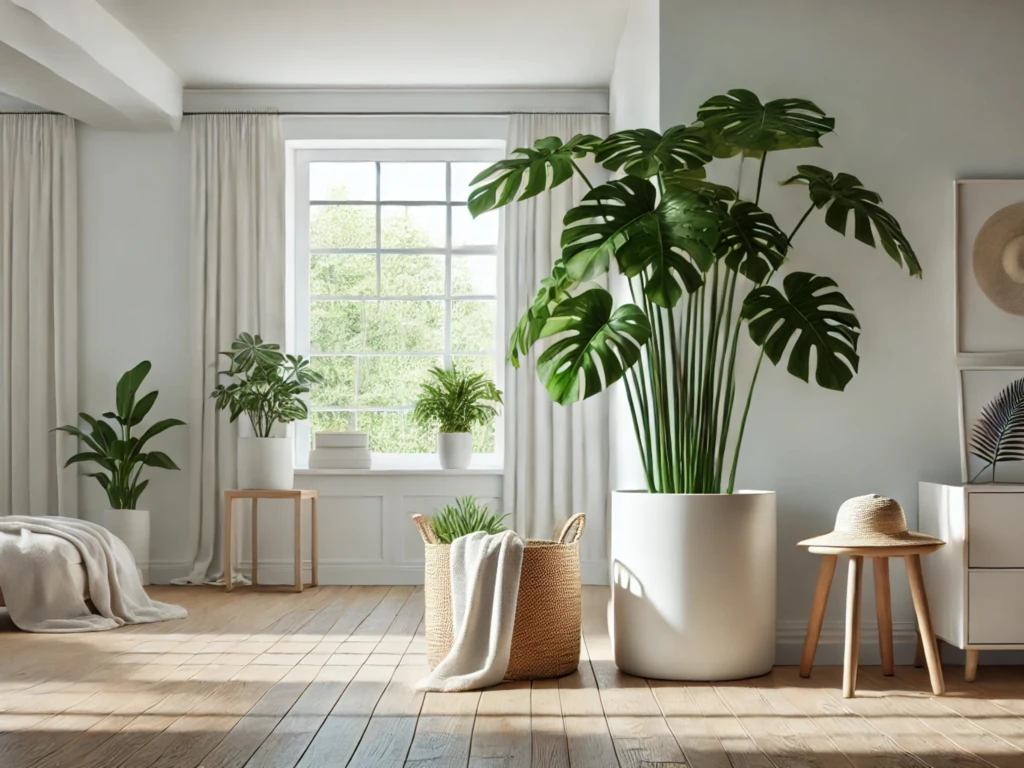 گلدان کنار سالنی سفید بزرگ