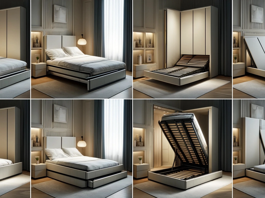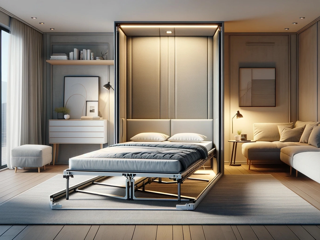 - تختهای تاشو دیواری: به صورت عمودی یا افقی در دیوار یا کابینت پنهان میشوند و برای افرادی که به دنبال راهحل دائمی و کمجا هستند ایدهآلند.