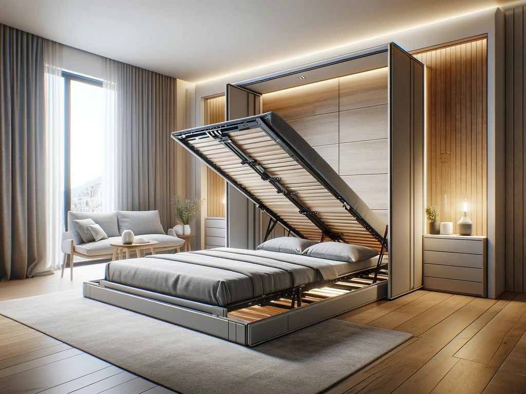 - مکانیزم لولایی: امکان باز و بسته شدن تخت به صورت افقی یا عمودی در داخل یک قاب یا کمد.