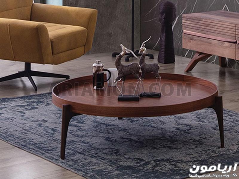 میز گرد جلو مبلی لبه دار CT110 طراحی آریامون زیبایی به فضا میبخشد.