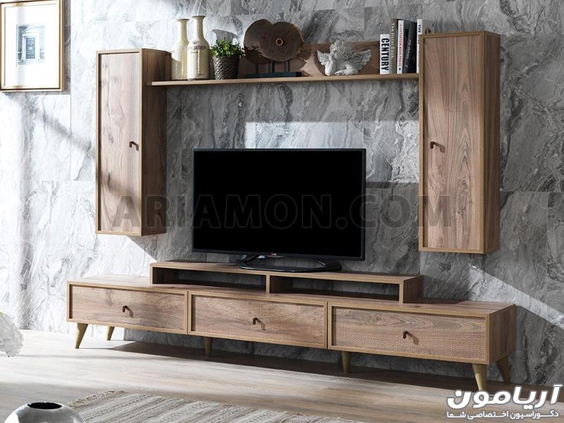 میز تلویزیون TS144 دارای سه کشو و باکس روی صفحه ی محصول قرارمی گیرد.